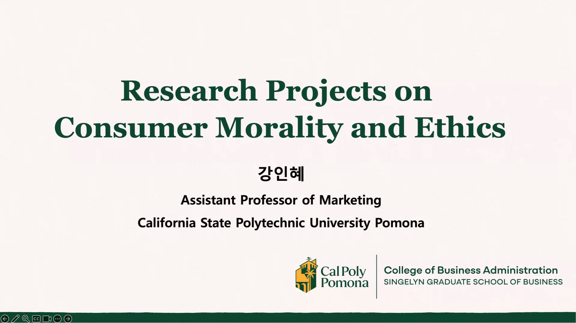 세미나: Research Projects on Consumer Morality and Ethics - 강인혜 교수(캘리포니아 폴리테크닉 주립대학교)10월 13일, 서울대학교 소비자학과에서는 “Research Projects on Consumer Morality and Ethics”를 주제로 세미나가 열렸다. 이번 세미나에서 캘리포니아 폴리테크닉 주립대학교 강인혜 교수는 소비자의 도덕성에 대한 인식이 소비에 끼치는 영향과 관련하여 진행한 연구들을 설명하고, 이를 토대로 얻은 인사이트들을 공유하였다. 일시: 2025. 10. 13(월) 시간: 오후 1시 ~ 2시 장소: Zoom